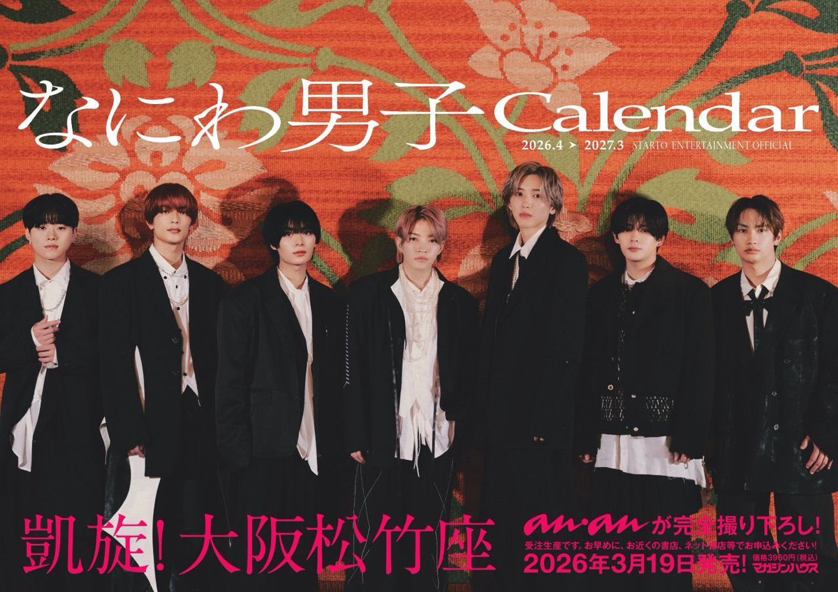 初のドーム公演を控え、グループのさらなる飛躍が期待されるなにわ男子が、約半年ぶりにanan 表紙に登場。3月19日に発売されるanan撮り下ろし「なにわ男子カレンダー2026.4→2027.3」から、彼らの地元・大阪で撮影したカットを中心に、anan本誌でしか見られないスペシャルなカットを厳選してお届けします。