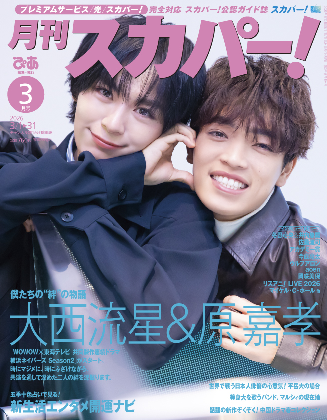 AD 月刊スカパー! 2026年3月号 雑誌表紙&巻頭特集 大西流星&原嘉孝 ドラマ「横浜ネイバーズ」W主演 2026.02.12 月刊スカパー! 2026年3月号 表紙・巻頭特集 大西流星&原嘉孝ドラマ「横浜ネイバーズ」W主演 大西流星 月刊スカパー! 初登場&初表紙! 発売日 2026年2月24日(火) 月刊スカパー! 2026年3月号 created by Rinker セブンネット タワーレコード Amazon 楽天市場 Yahooショッピング HMV&BOOKS