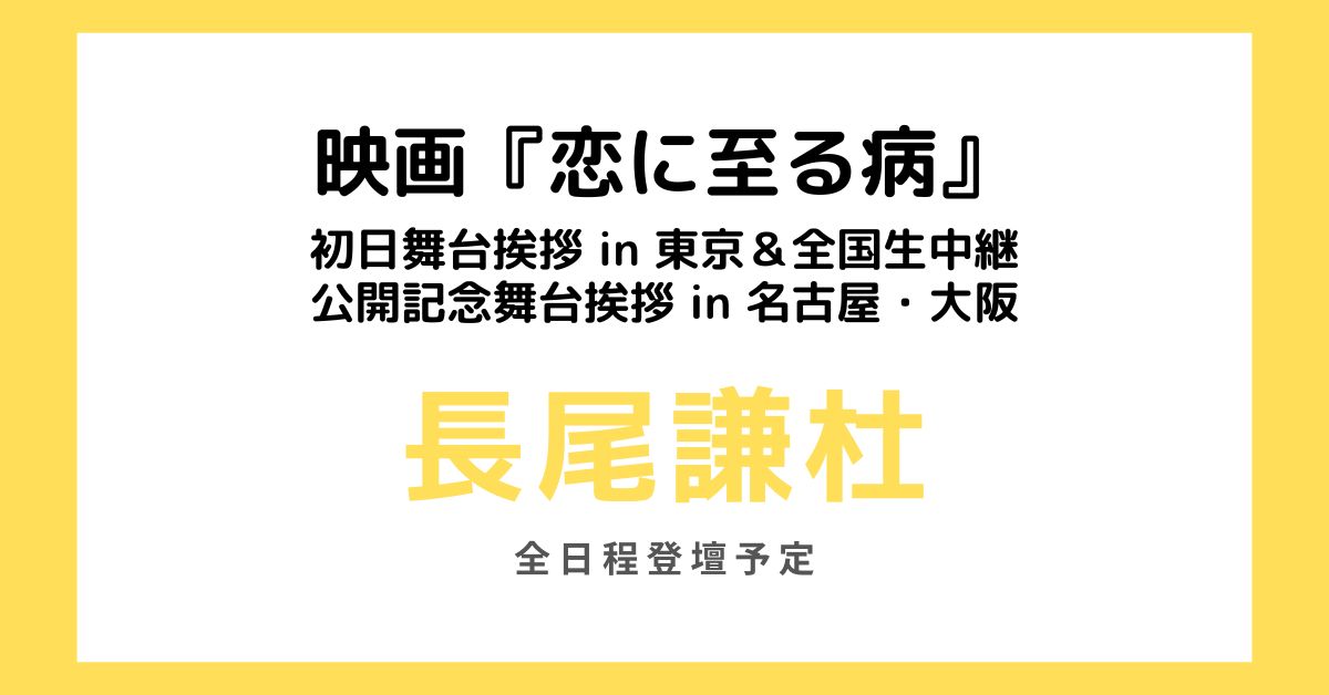 - 【長尾謙杜登壇】映画「恋に至る病」初日&公開記念舞台挨拶開催決定